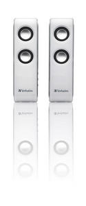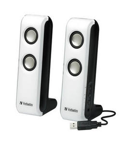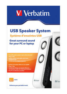 Sustav USB zvučnika Verbatim neznatno je veći od srodnog prijenosnog sustava, a idealan je za radni stol. Sustav zvučnika ima ugrađenu kontrolu glasnoće i mogućnost isključivanja zvuka pa na taj način možete nadzirati zvuk izravno na zvučnicima. Nadalje, sustav zvučnika ima ugrađenu utičnicu za dodatne slušalice.